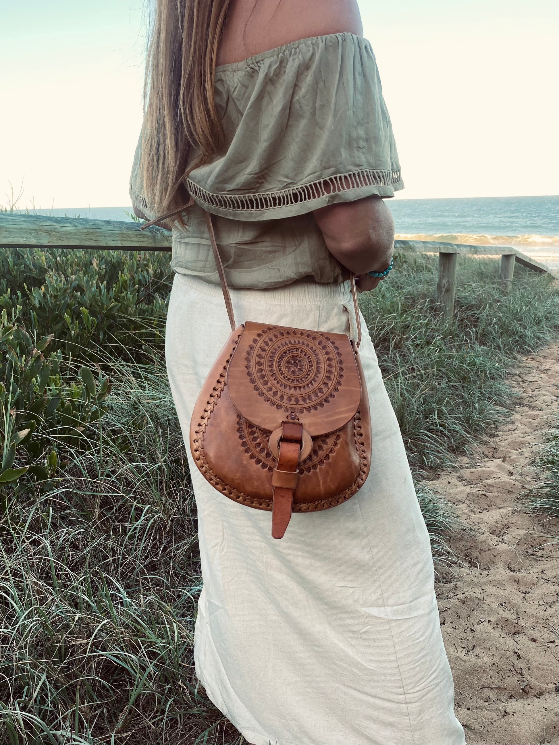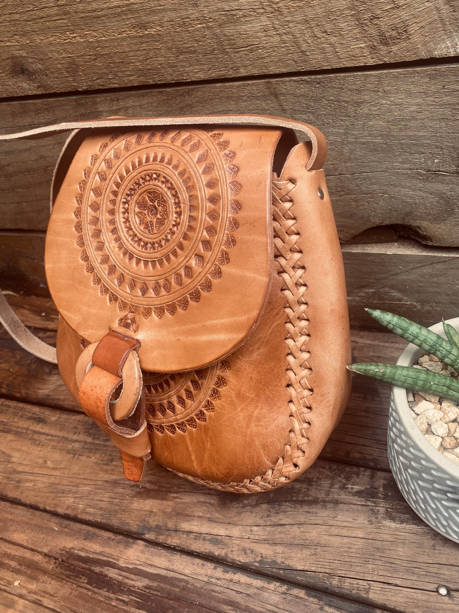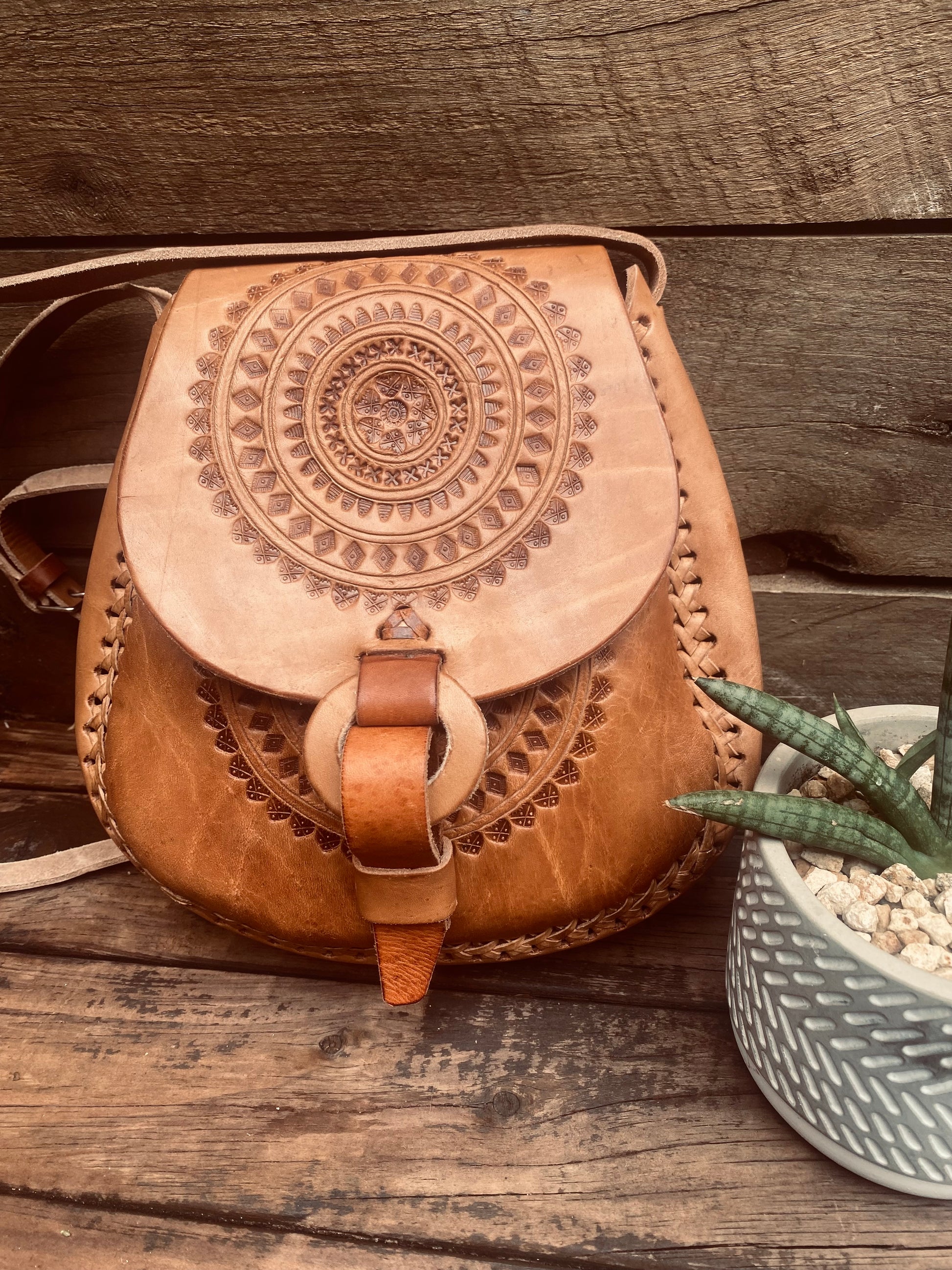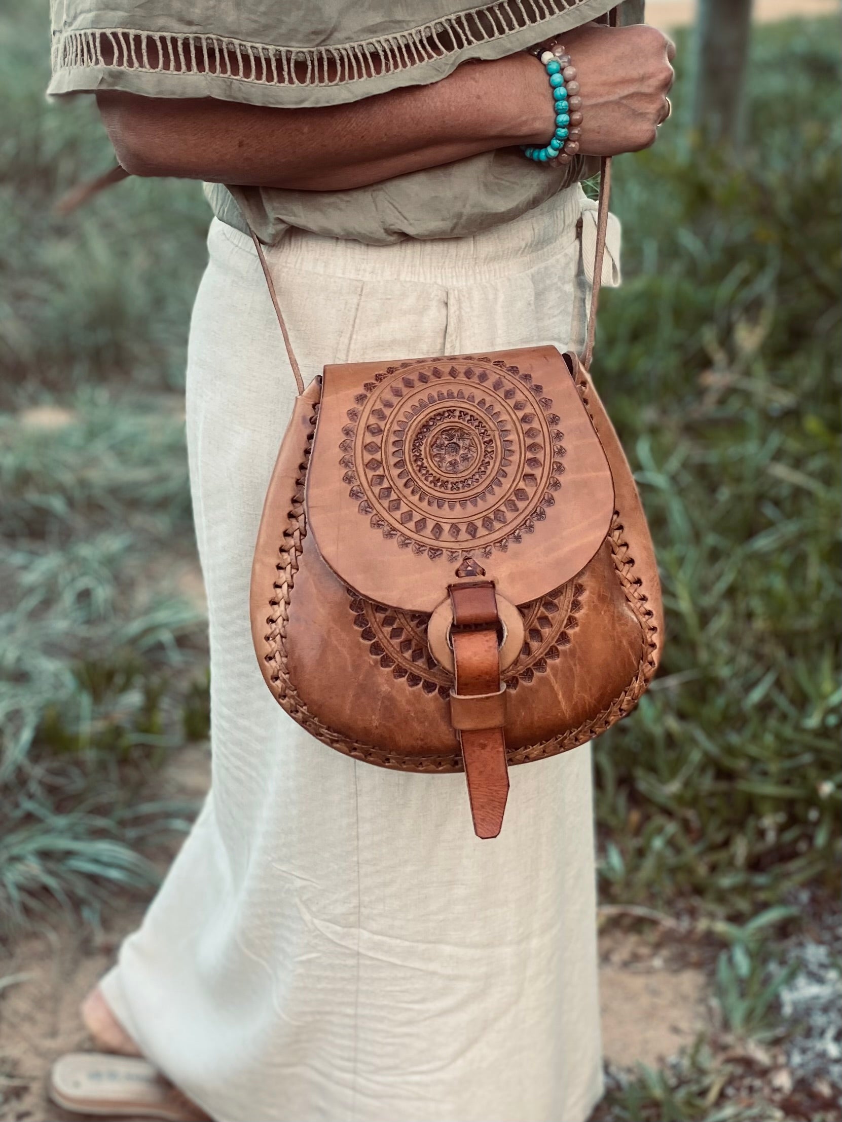 Luna bag is stunning with the authentic hand tooled design on the top and on the inside. Such a vintage boho style bag, handcrafted in thick durable leather