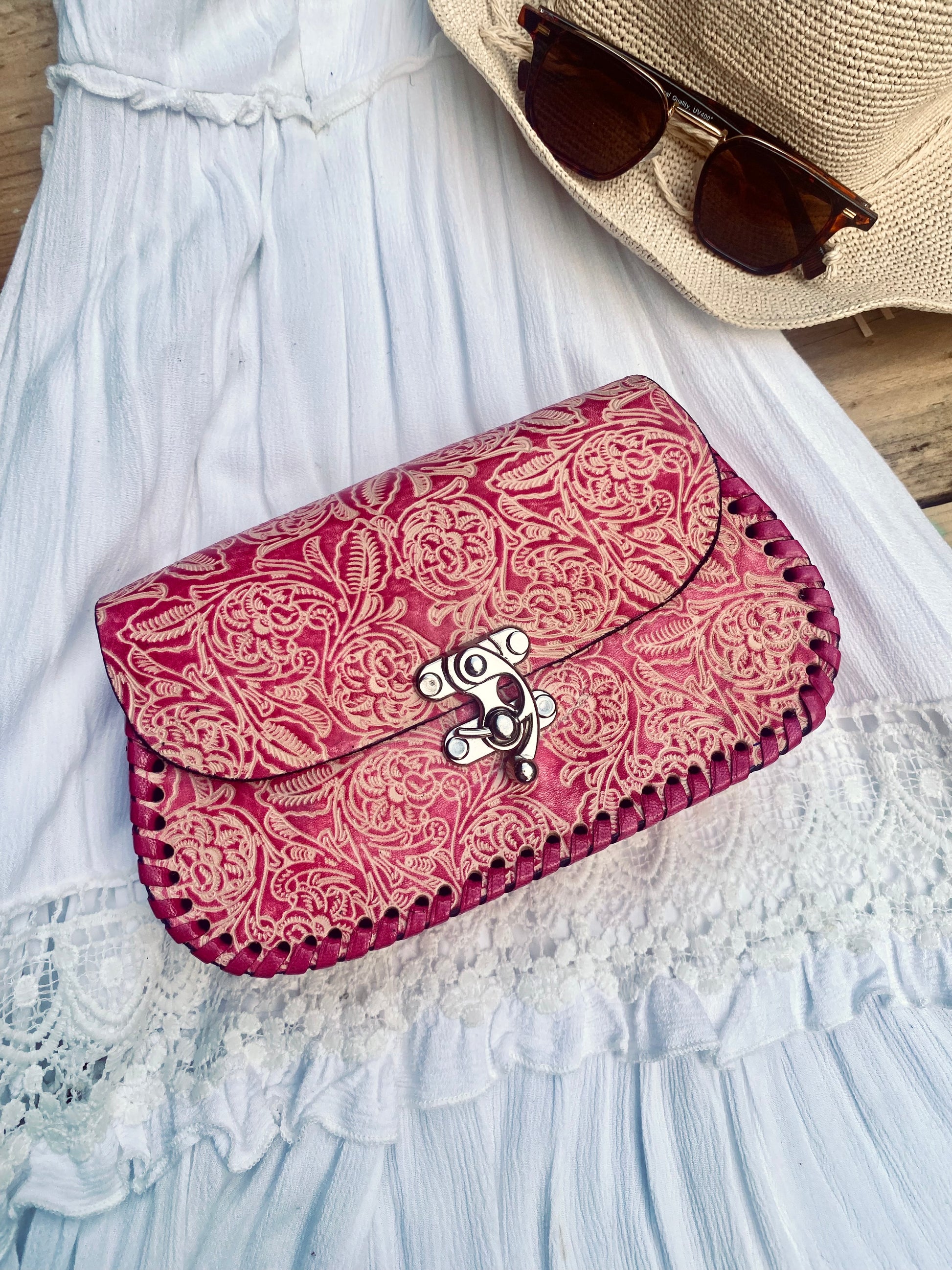 Our smaller colour bags, are just stunning with the vibrant colours and design. Made with durable leather and the hand stitching around the edges.