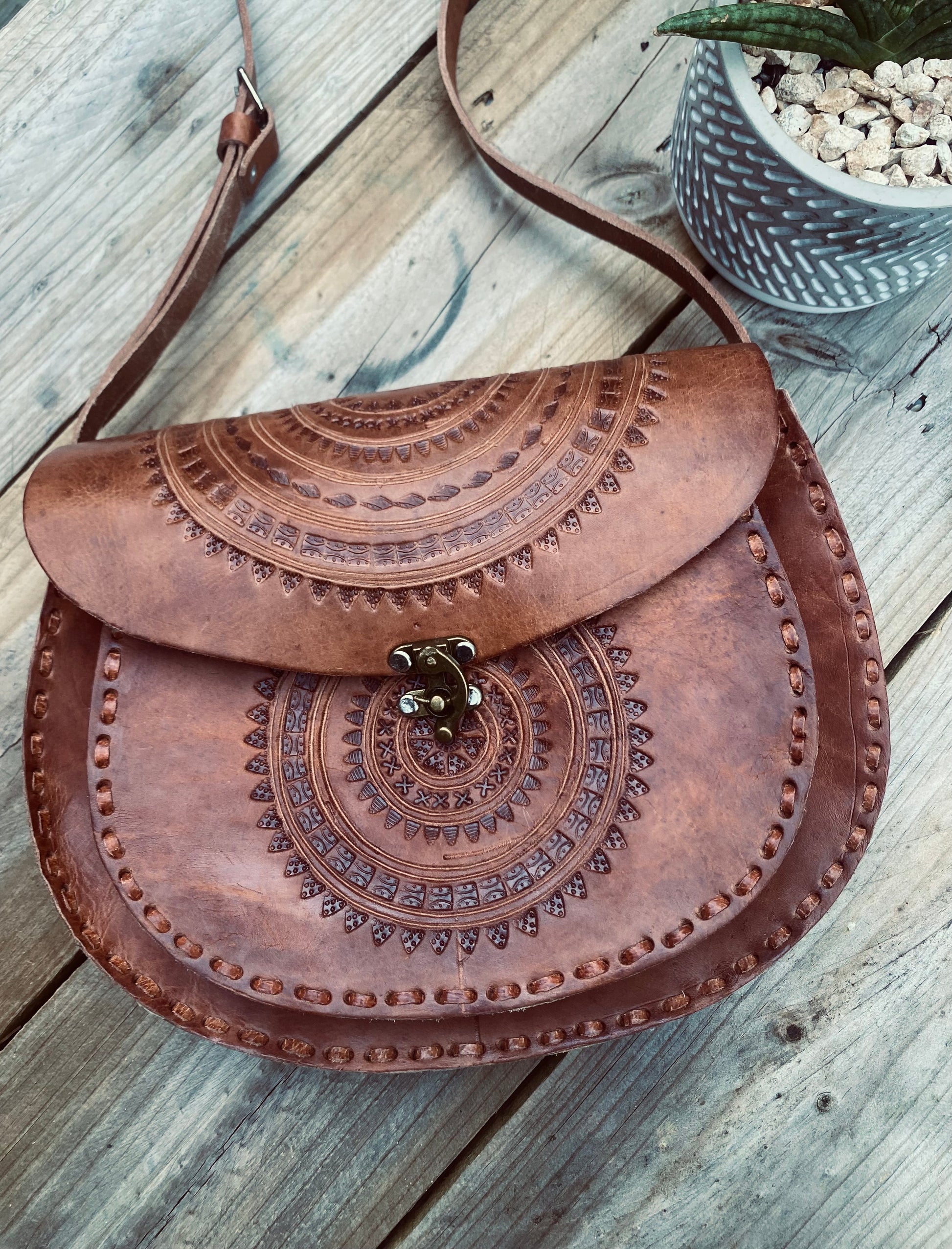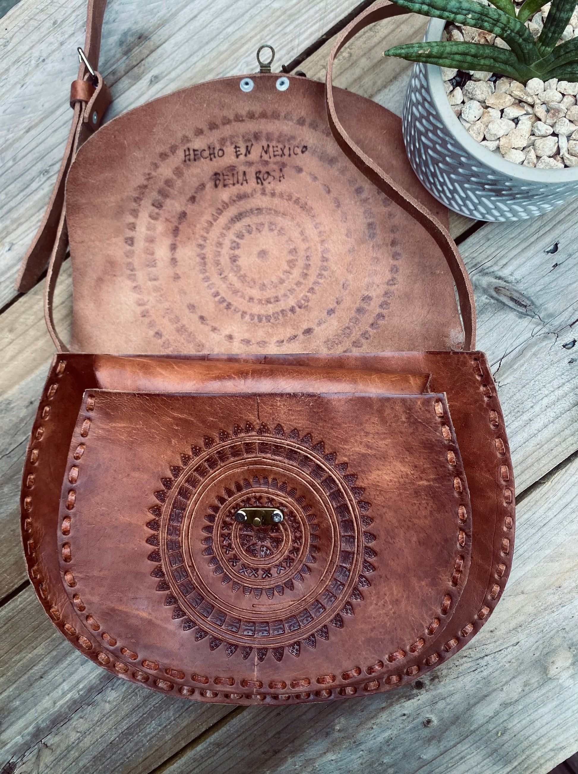 The vintage style Rosanna bag is made of thick, high quality leather, and hand-tooled for an unmistakable look. Its latch, reminiscent of a classic style, gives you a practical way to keep your items safe and sound. And the front pocket is the perfect spot for quickly stashing away your must-haves. You'll be turning heads with this one!