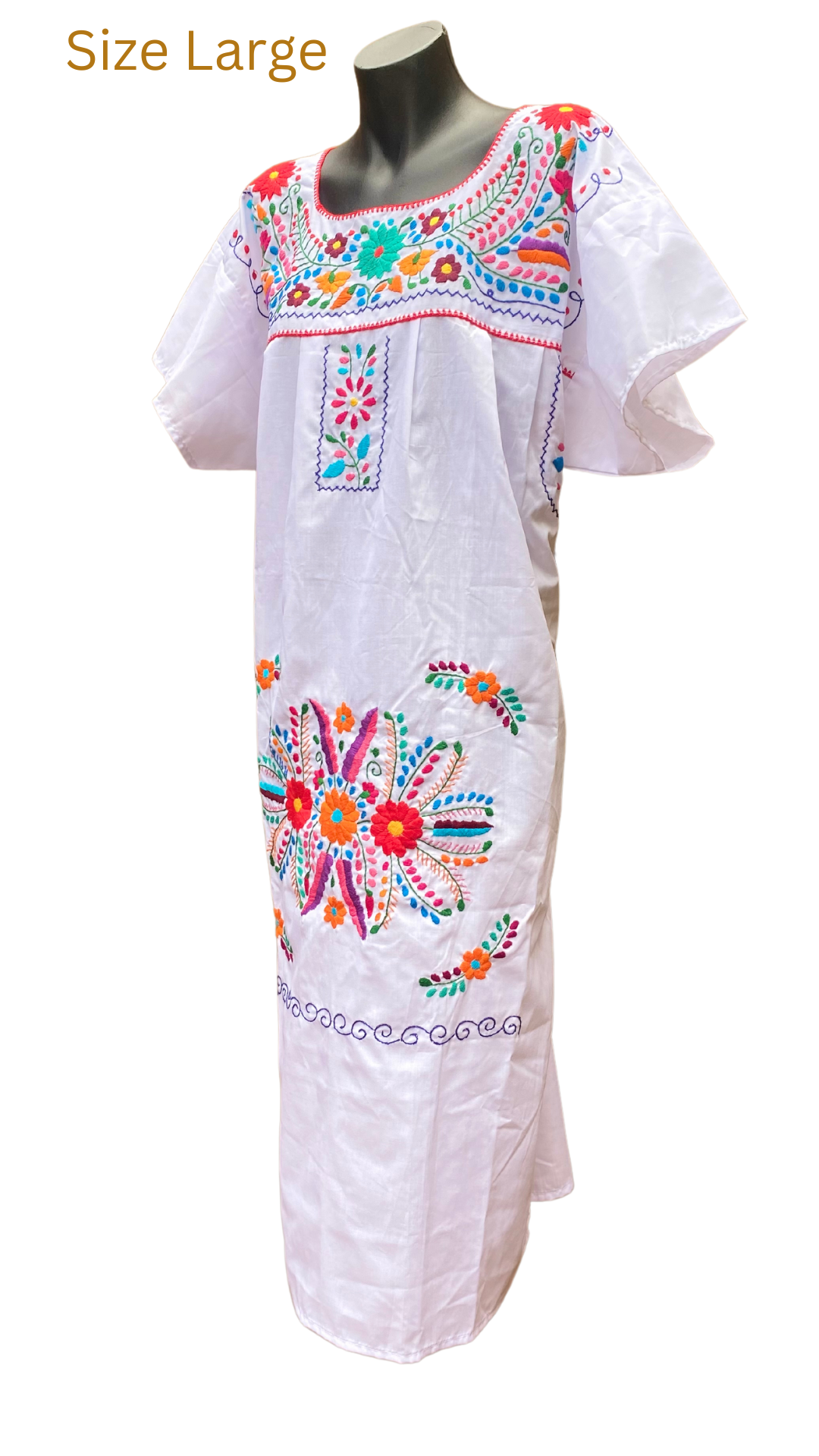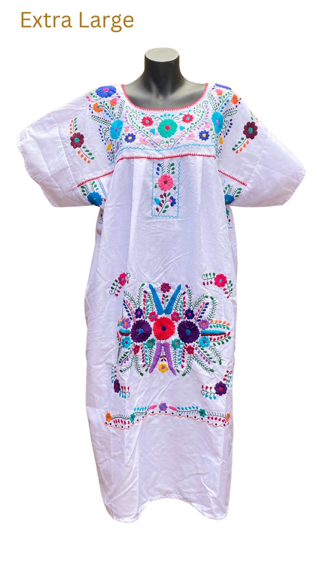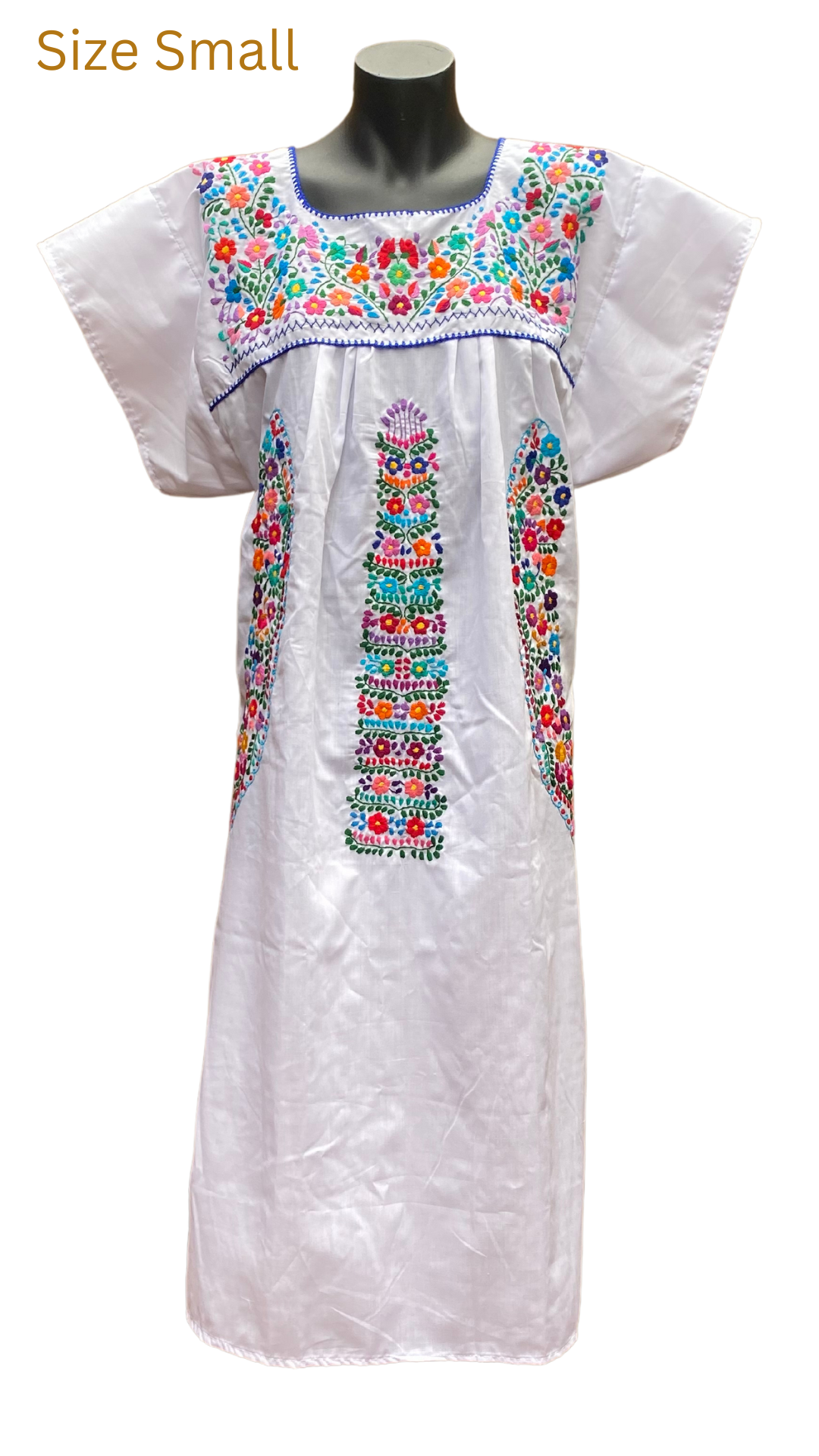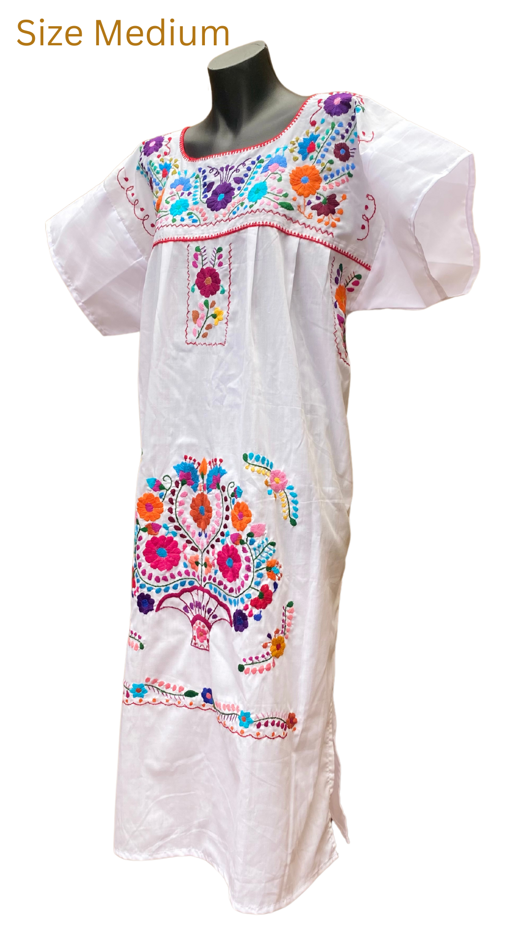 These stunning hand embroidered dresses are light weight and one of a kind. They look great belted or free flowing.