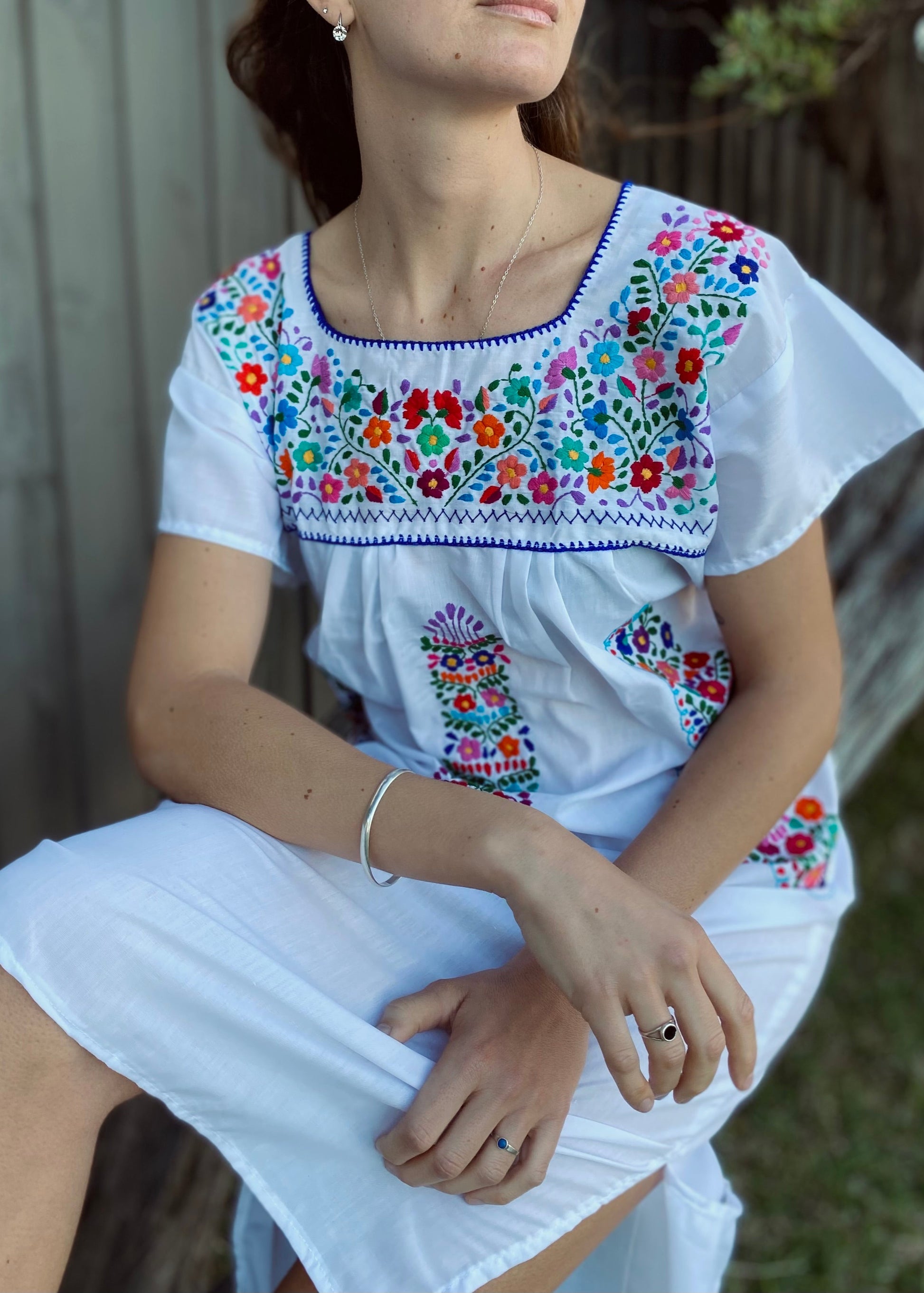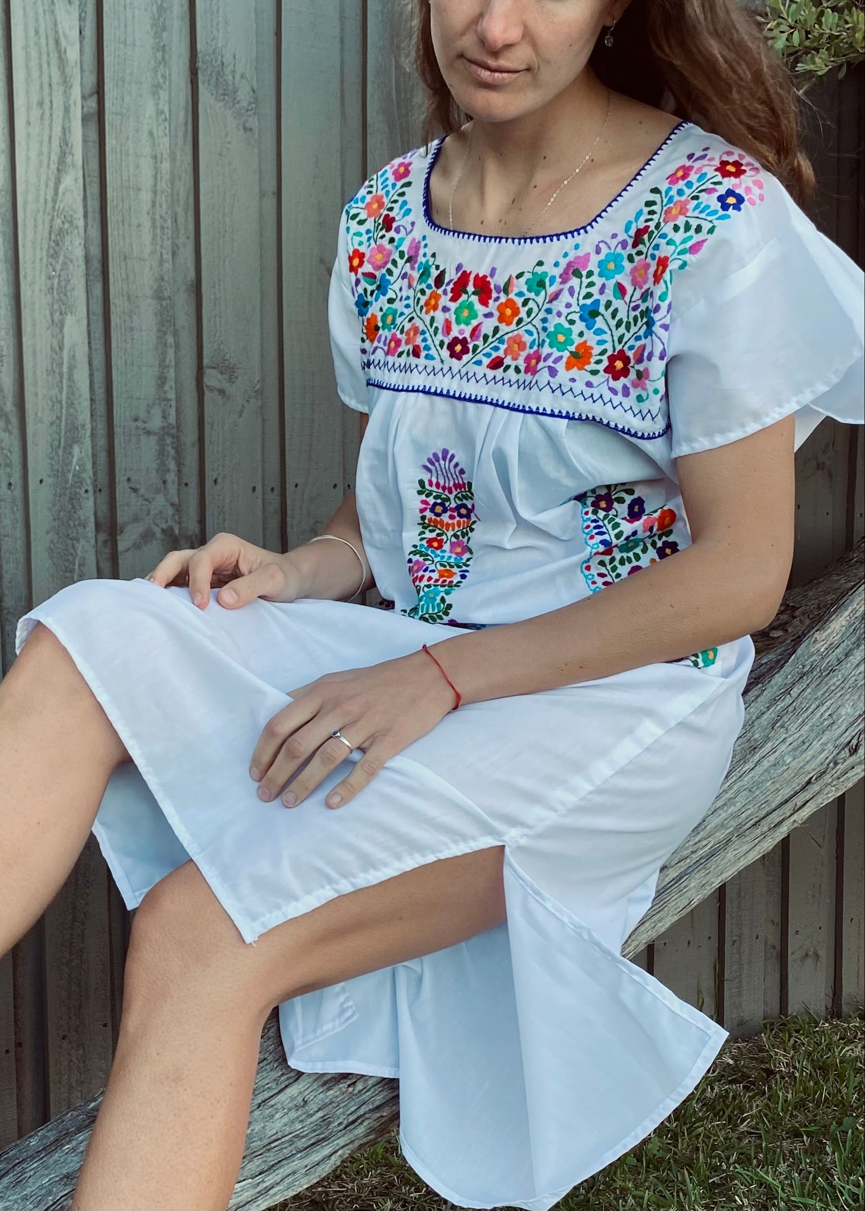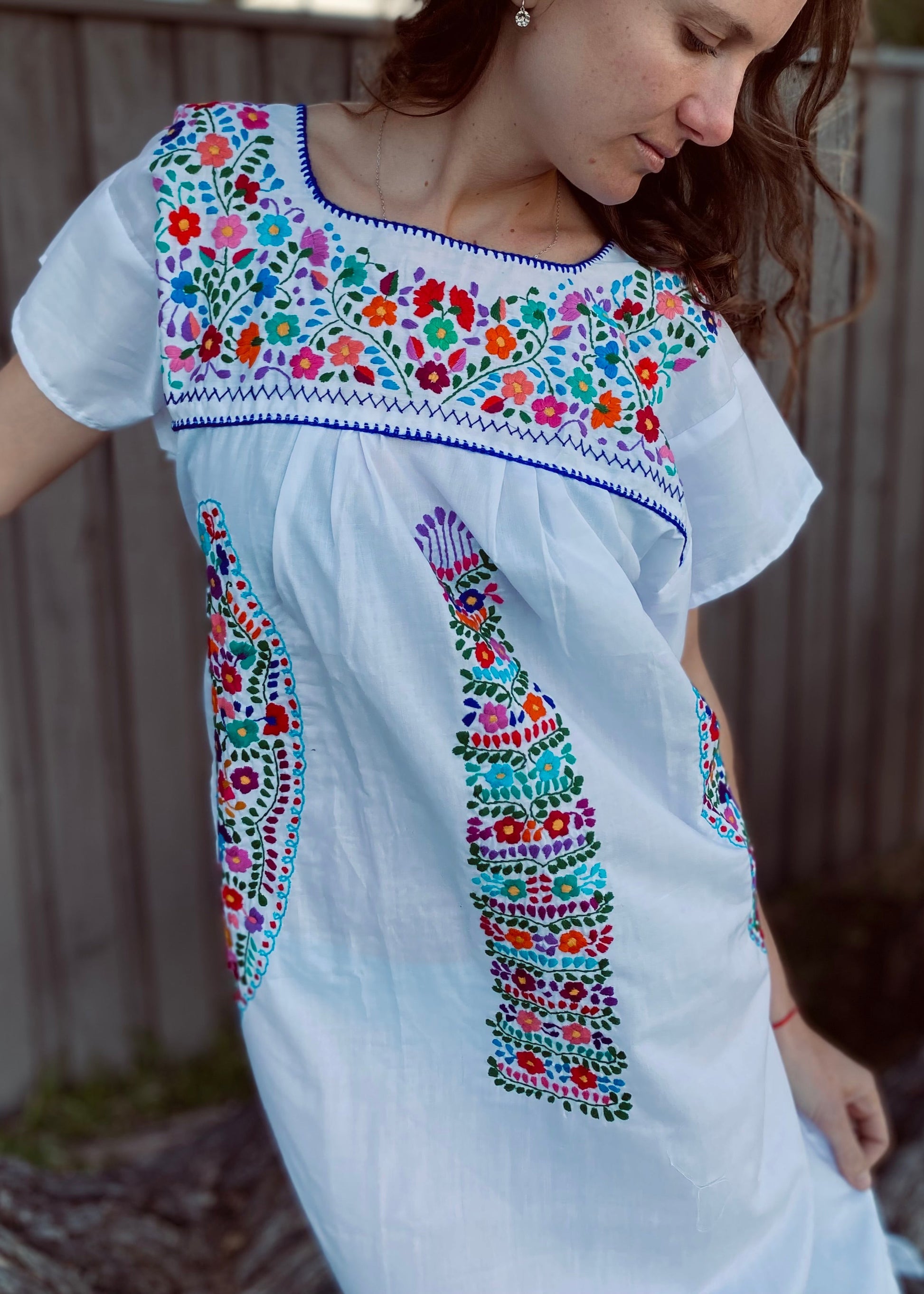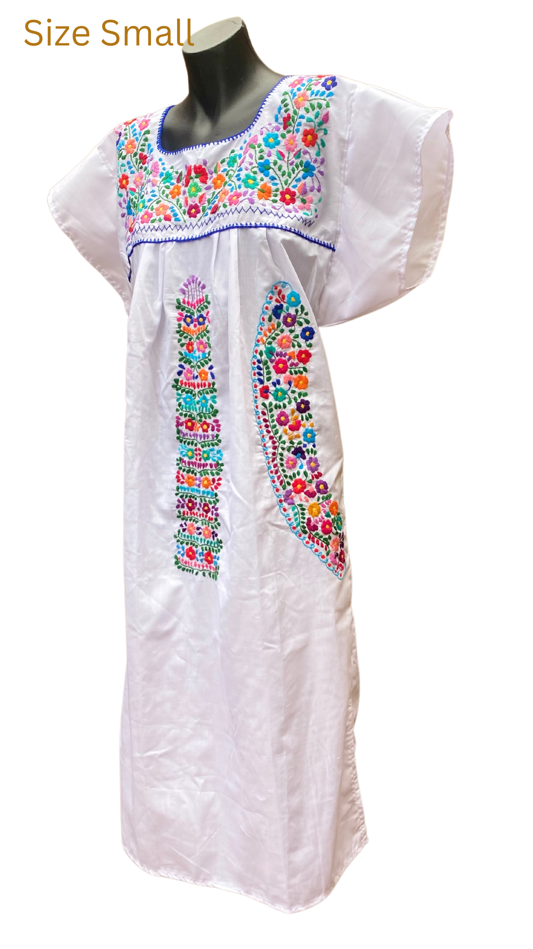 These stunning hand embroidered dresses are light weight and one of a kind. They look great belted or free flowing.
